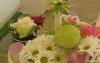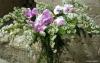 Floral wardrobe for the composition of 'yoko ono' holy pictures as wedding ring case for pageboy and hyacinths as garlands for cherubs.