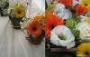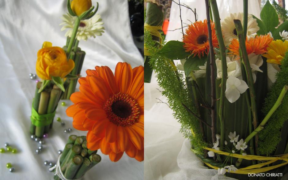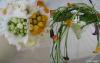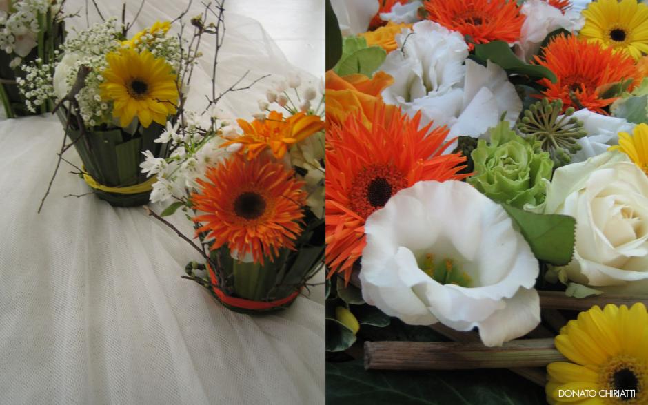 Intenzioni di campo per allestimenti floreali con physalis, calle, timo e setaria.